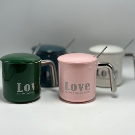 Mugs Romantiques « Love » avec Couvercle et Finitions Argentées