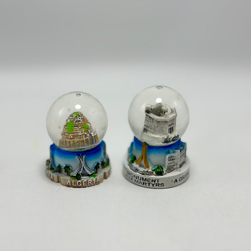 Petite boule de neige décorative aux couleurs et motifs de l’Algérie. Idéale comme souvenir, cadeau ou objet de décoration, elle apporte une touche originale et symbolique à tout espace.