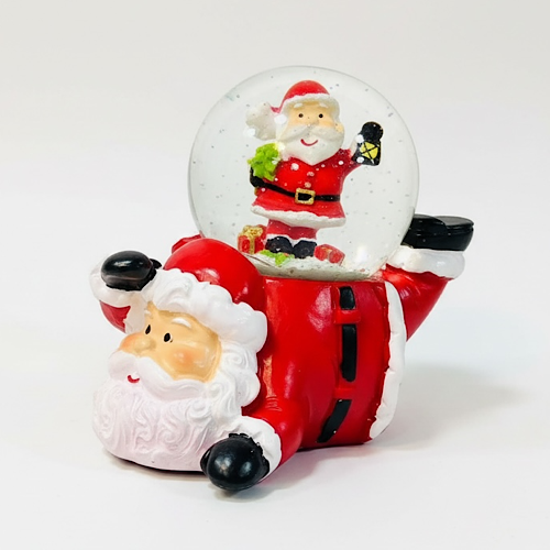 une décoration festive représentant une scène de Noël à l’intérieur d’une sphère transparente, qui crée un effet de neige magique lorsqu’on la secoue, parfaite pour décorer la maison ou offrir en cadeau.