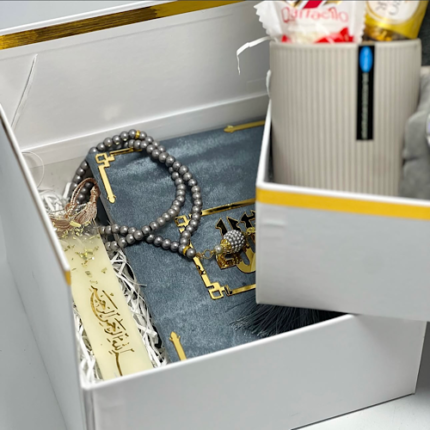Offrez une box islamique pour homme en Algérie, spécialement conçue pour le mois sacré de Ramadan. Nos coffrets cadeaux islamiques contiennent une sélection soigneusement choisie : entre tapis de prière, chapelet (sebha), Coran et autres attentions raffinées ! ( chaque box a son contenue )