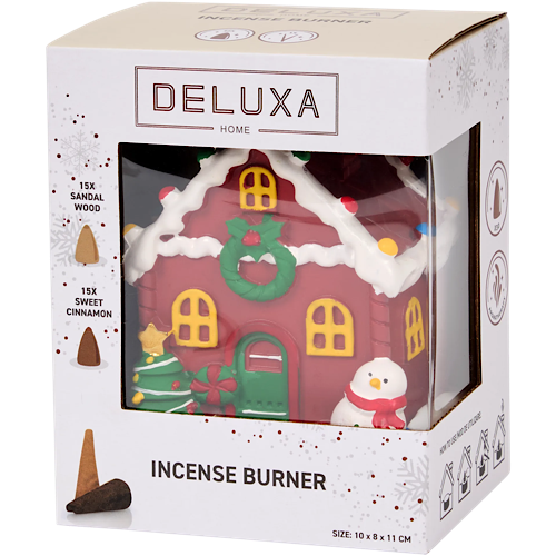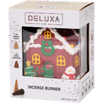 Brûleur d’encens en forme de maison de Noël avec porte-encens, une pincette et 30 cônes d’encens – Deluxa