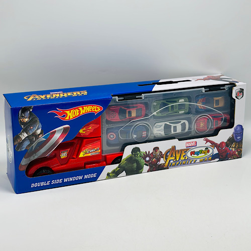 Camion porte-voitures accompagné de voitures Hot Wheels aux motifs Avengers. Pratique et ludique, il permet de transporter et de ranger les petites voitures tout en offrant une expérience de jeu amusante. Idéal pour les enfants fans de super-héros et de voitures, parfait comme cadeau.
