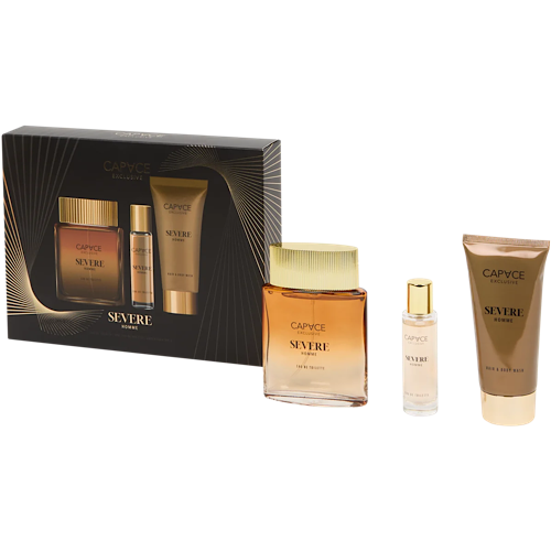 Coffret cadeau CAPACE pour homme, présenté dans une élégante boîte, idéal pour offrir. Il contient un shampooing & gel douche 2-en-1, une eau de toilette et une mini eau de toilette, pour une routine parfumée complète. Un coffret pratique et raffiné, parfait comme idée cadeau masculine pour toutes les occasions.