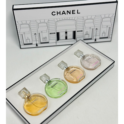 Découvrez le Coffret Parfum Quatuor « Chance » – Chanel, un ensemble élégant qui rassemble les fragrances emblématiques de la célèbre collection Chance. Ce coffret est parfait pour explorer différentes facettes de la gamme, du parfum classique aux notes fraîches, fruitées et florales, dans un format pratique et raffiné. Idéal pour se faire plaisir ou offrir un cadeau luxueux et sophistiqué.