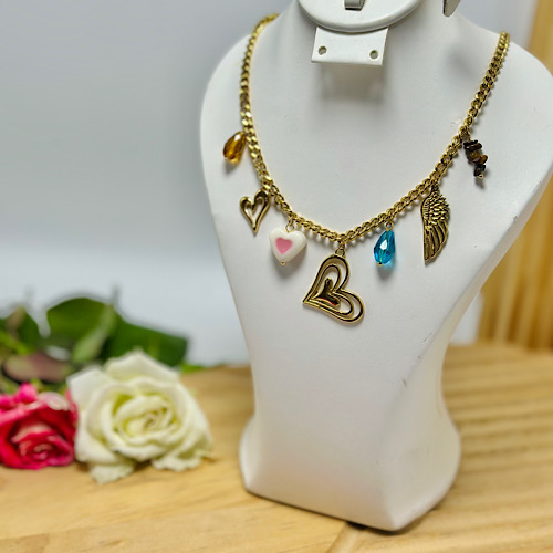 ce collier en acier inoxydable est orné de délicates breloques en forme de cœur, symbole d’amour et de tendresse. son design raffiné apporte une touche élégante et féminine à votre style.