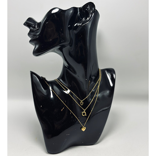 Ce collier en acier inoxydable présente trois rangs délicatement ornés de pendentifs en forme de cœur, apportant une touche romantique et élégante à votre style. Son design fin et moderne s’adapte à toutes les tenues, du quotidien aux occasions spéciales.