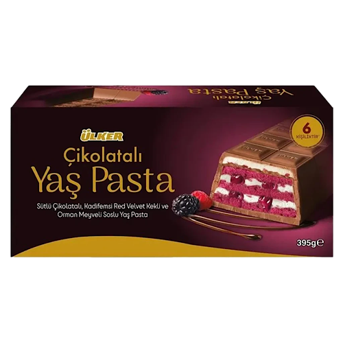 Gâteau Red Velvet moelleux au chocolat – Ülker : un délicieux gâteau individuel au goût unique de red velvet, au cœur tendre et enrobé de chocolat fondant. Une texture moelleuse et une saveur riche pour une pause gourmande et élégante.