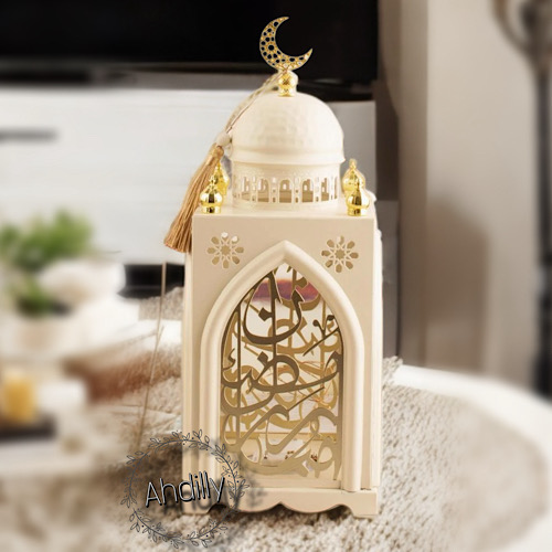 Lanterne blanc beige lumineuse avec décoration mauresque
