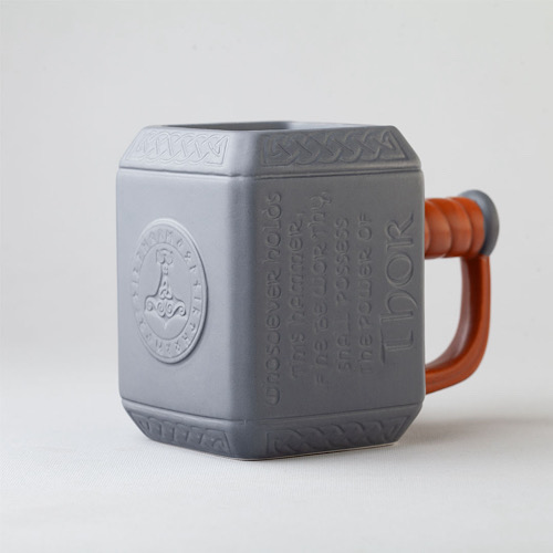 Mug des Héros inspiré du marteau de Thor, Mjölnir, un design unique et original qui séduira les passionnés d’univers fantastiques et de mythologie nordique. Avec sa forme carrée distinctive et ses détails en relief, il se démarque par son style puissant et authentique.