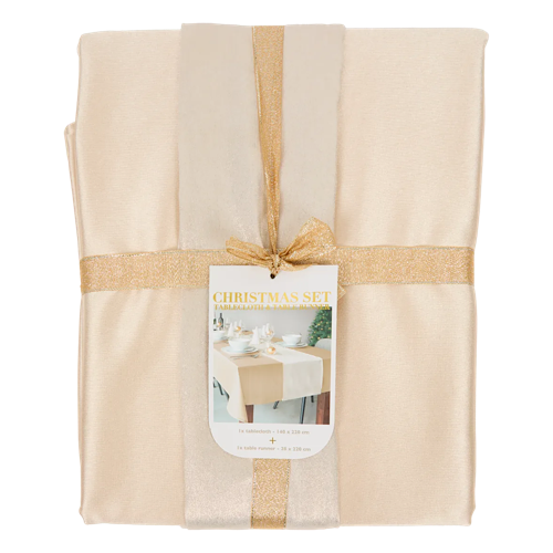 Apportez encore plus de magie à votre table de Noël avec cette nappe et son chemin de table assorti. Le chemin de table a une couleur plus claire, ce qui le met en évidence sur la nappe. Les subtiles paillettes scintillent à la lumière des bougies.