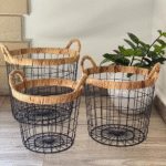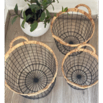 Trio de paniers en métal et rotin – élégance et rangement naturel