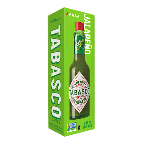 Sauce Jalapeño – Tabasco: une sauce verte douce à moyennement piquante, préparée à base de piments jalapeños verts, avec un goût frais et légèrement acidulé. Parfaite pour relever tacos, pizzas, œufs et plats mexicains sans être trop forte.