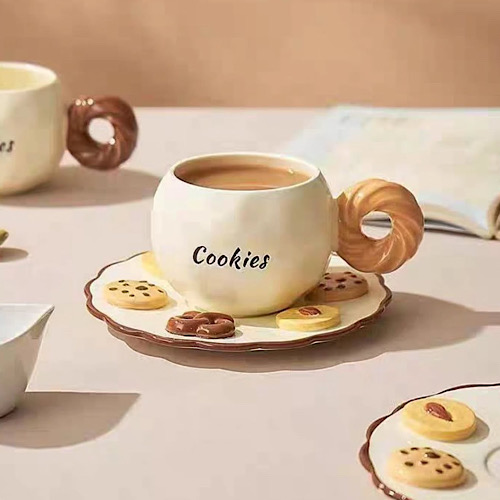Tasse & Sous-Tasse “Pause Biscuit” – Design Gourmand en Relief